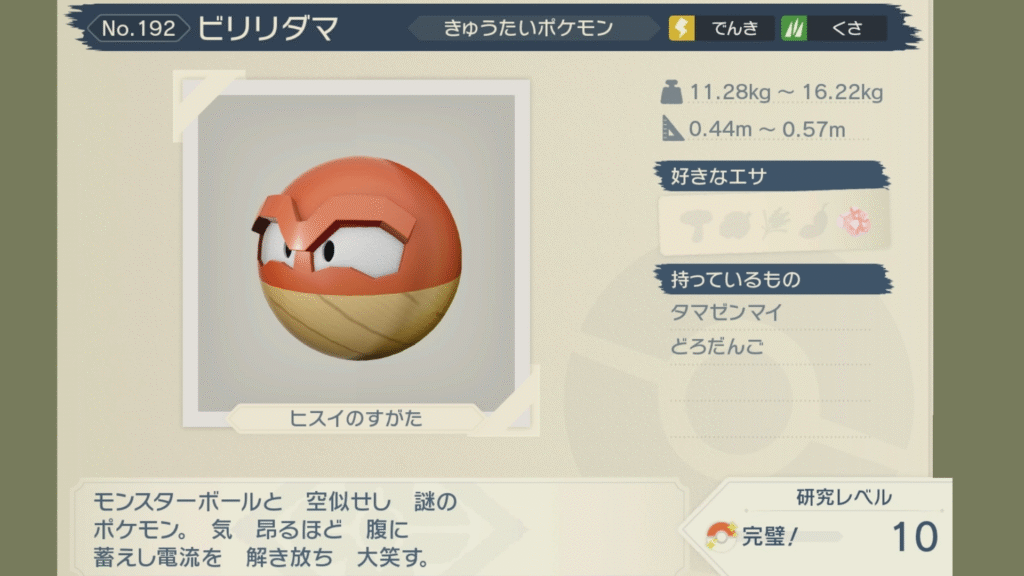 【レジェンズアルセウス】NO.192 ビリリダマの図鑑タスク!