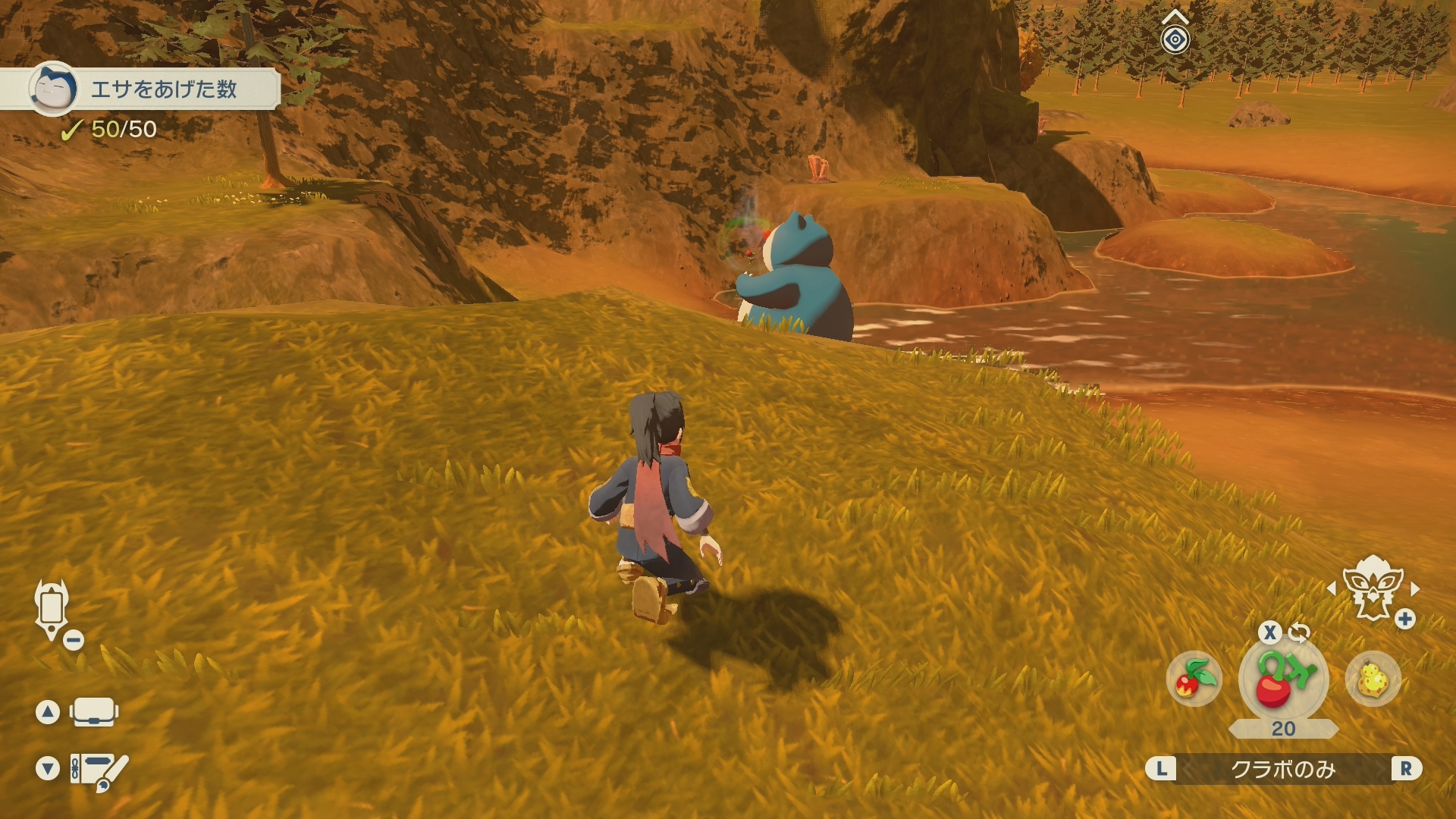 エサは連続で上げることが出来ます。好物でなくてもいいので、大量に手に入れやすいオレンのみを投げてタスクをこなしましょう。