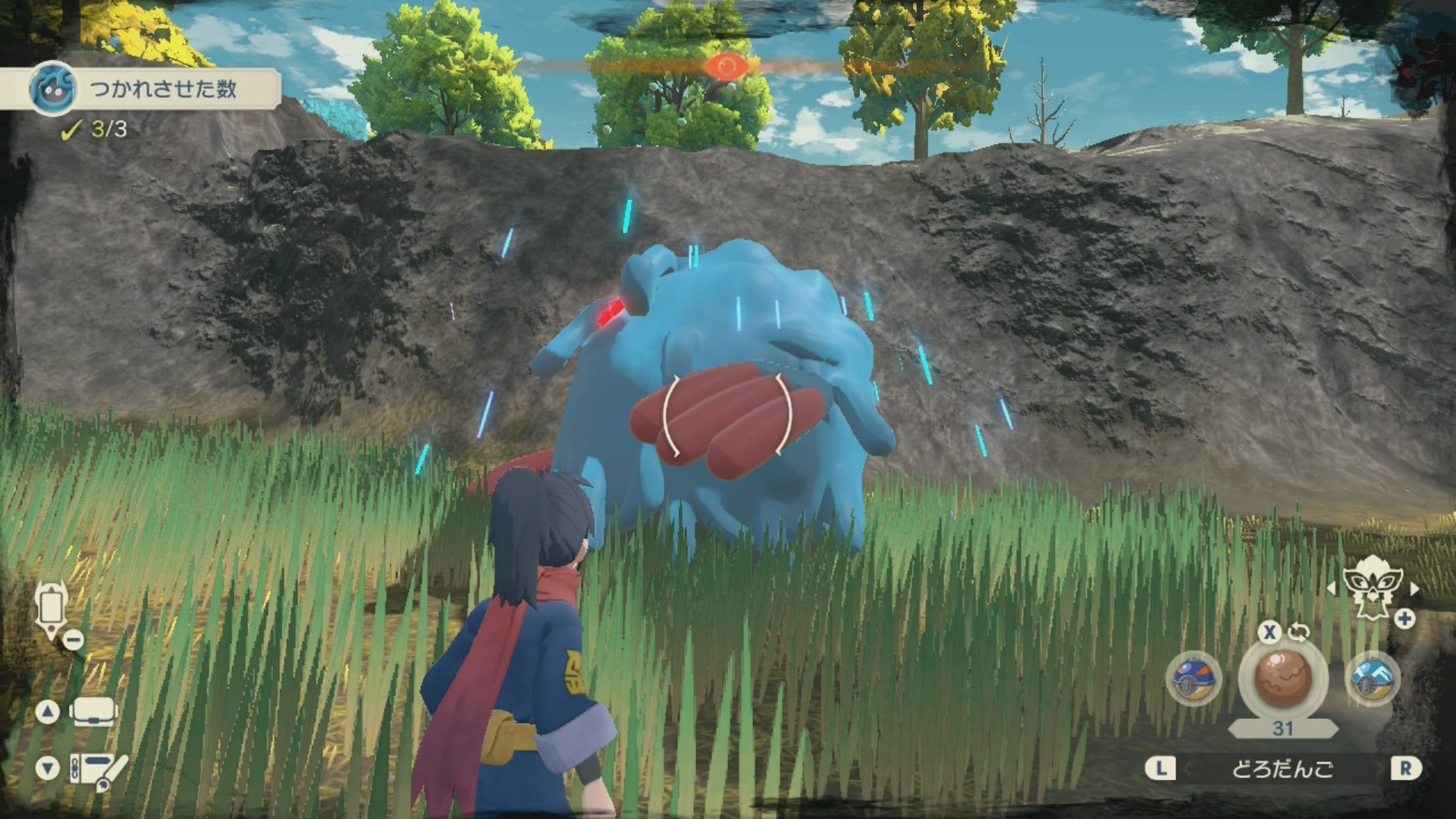 体が大きい=的が大きいので少し離れたウィングボール系当てて捕まえるとやりやすいです。離れていたら襲ってきませんし、もし襲ってきたら毒タイプの技で仕留めて別のタスク稼ぎをしましょう。