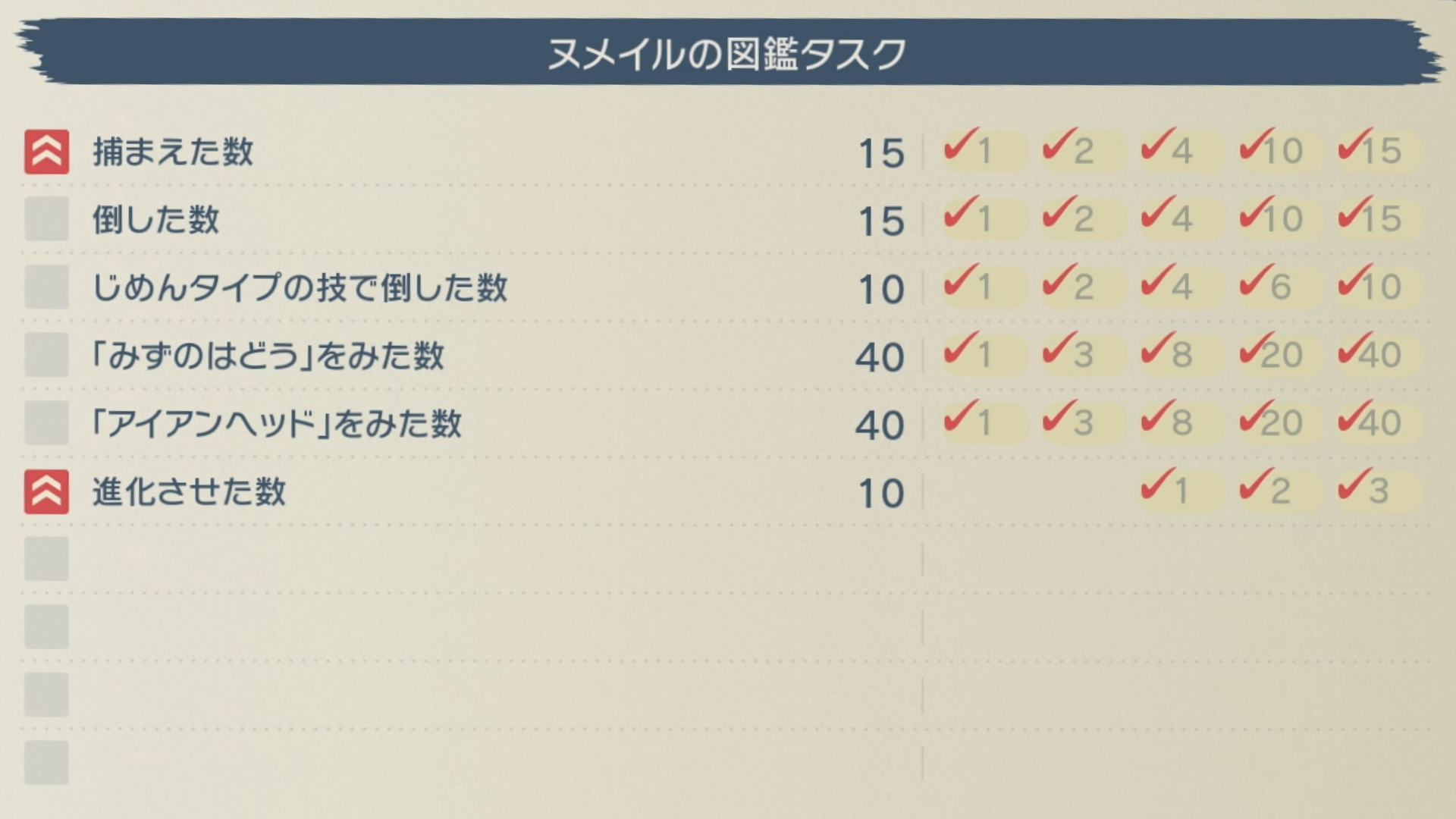 ヌメラの図鑑タスクをやった時点ですでに3回加算されていると思いますが、