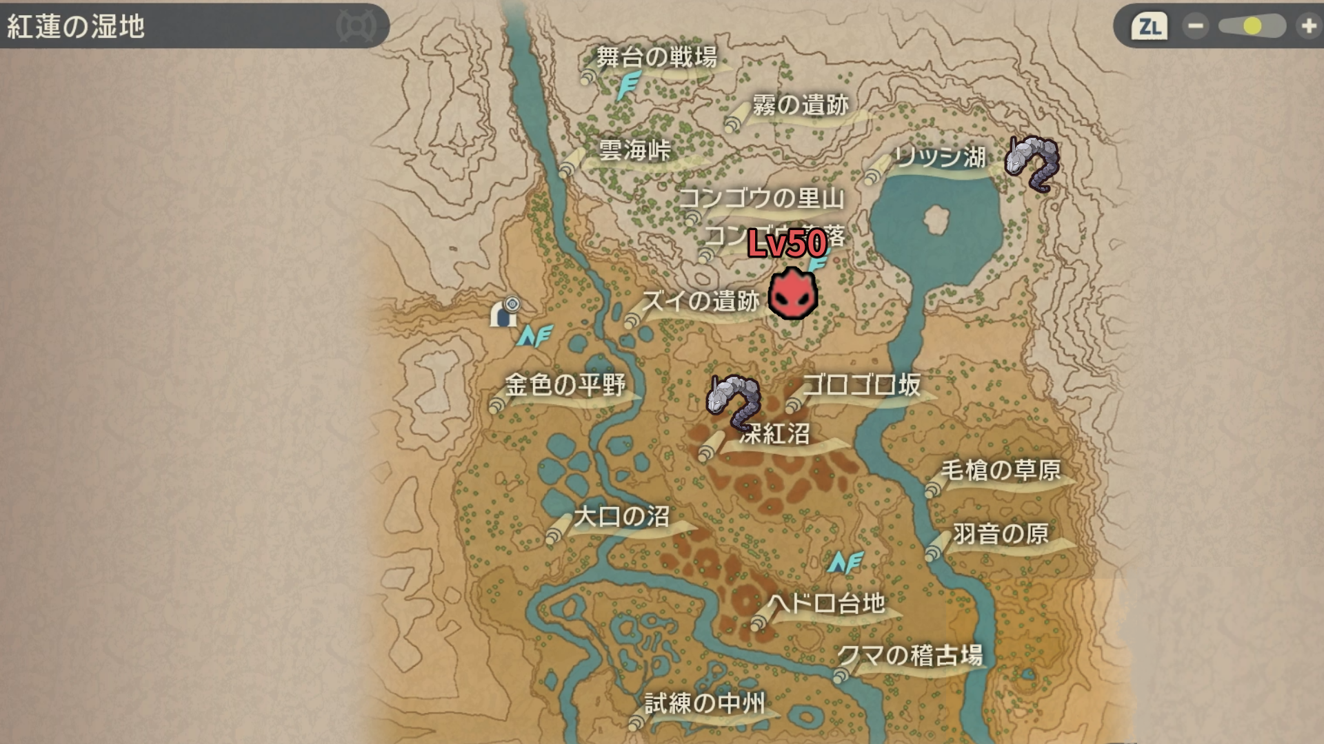 レベルは紅蓮の湿地到着時点ではまあまあの高さですが、捕獲率がかなり高いので、団員ランク2でも無補正で捕獲は可能です。
