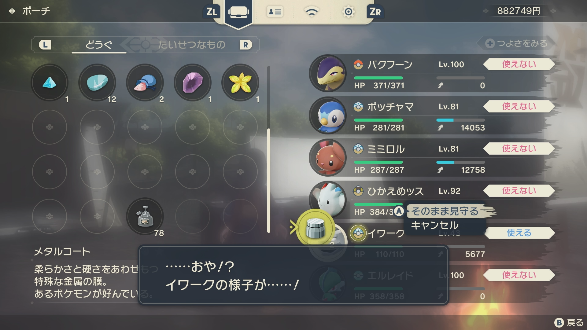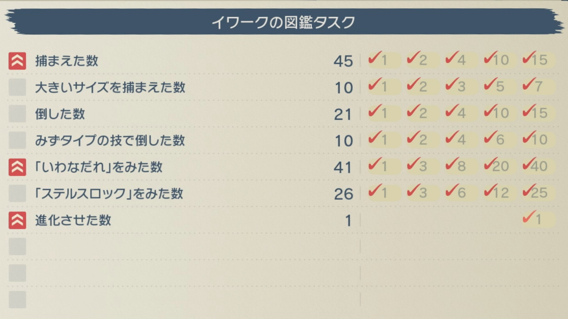 “大きいサイズ”タスクはあるものの、紅蓮の湿地にオヤブンが確定で出現しますので問題なし。タスクも簡単な方で、進化は貴重なメタルコートを使う物のタスクは1回でOK。ハッサムと取り合いにはなりますが1個くらいイワークに使わせてあげて。