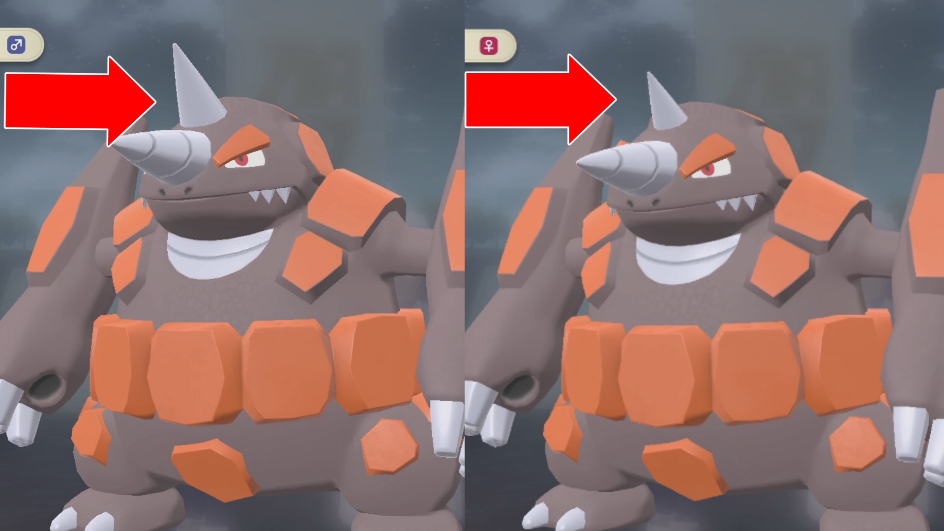 ドサイドンのオスメス違いはサイホーン時代から同じく角の長さで、