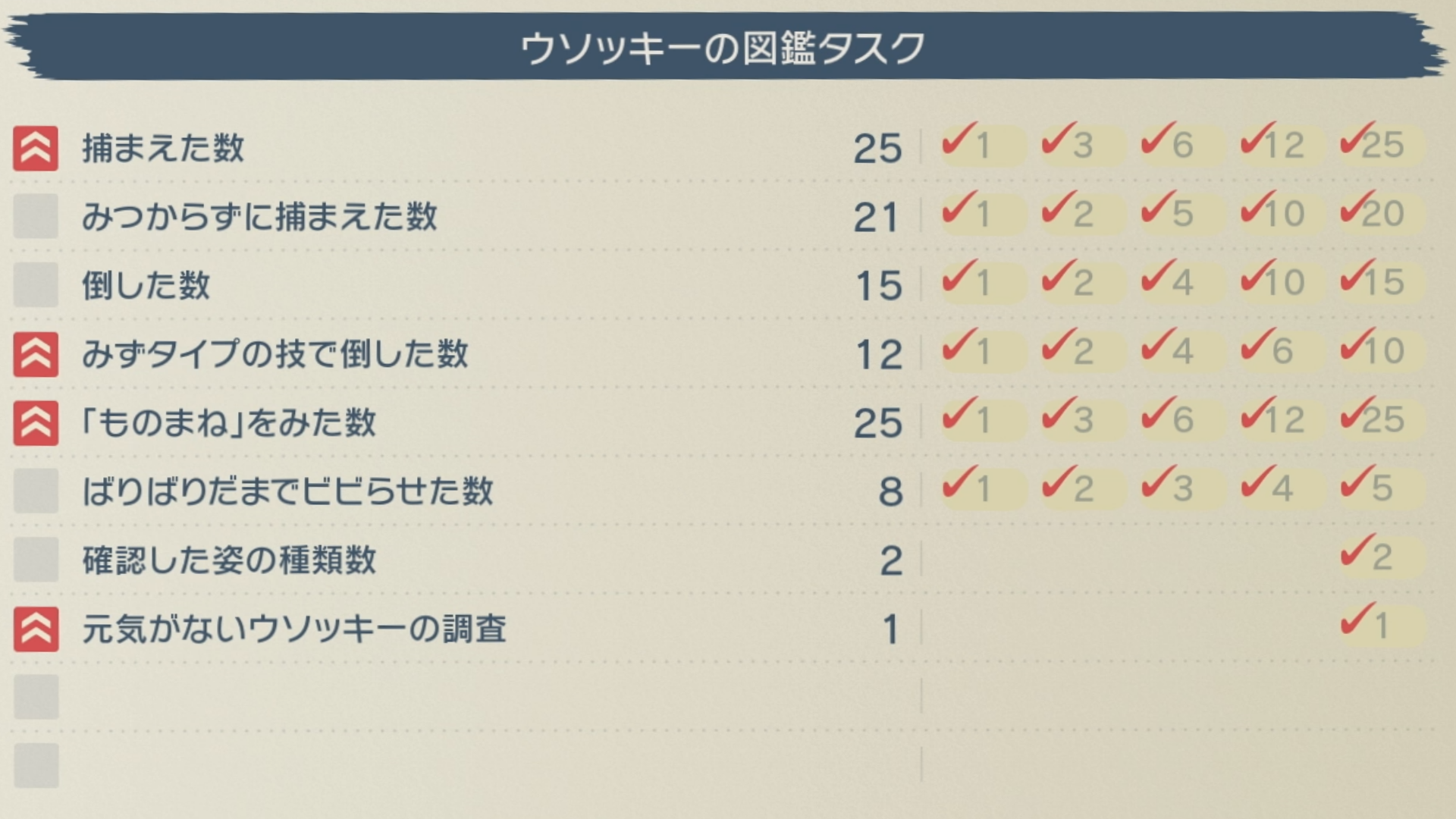 “みつからずに”タスクがあります。ウソハチがレベル29で『ものまね』を覚えて進化しても加算されます。