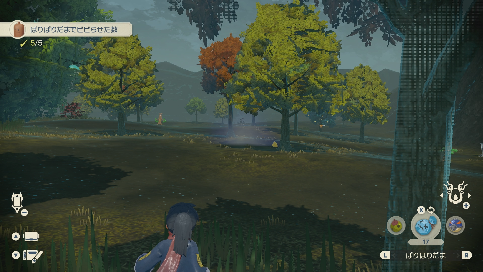 相手に気付かれていない状況で「ばりばりだま」を投げるとポケモンがビックリしてその場を離れます。通常時は集団でいるときに、集団に襲われないように使用します。