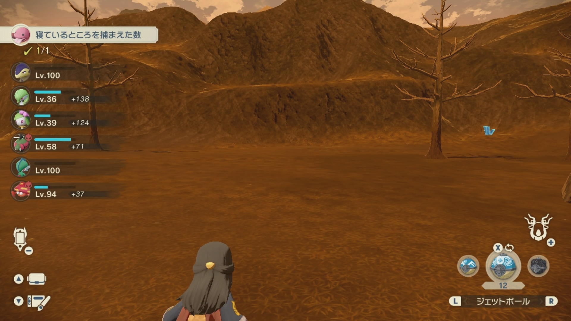 霧の遺跡の手前、オヤブンベロベルトのところは草むらがあるので見守りやすいです。眠るまで待ちましょう。