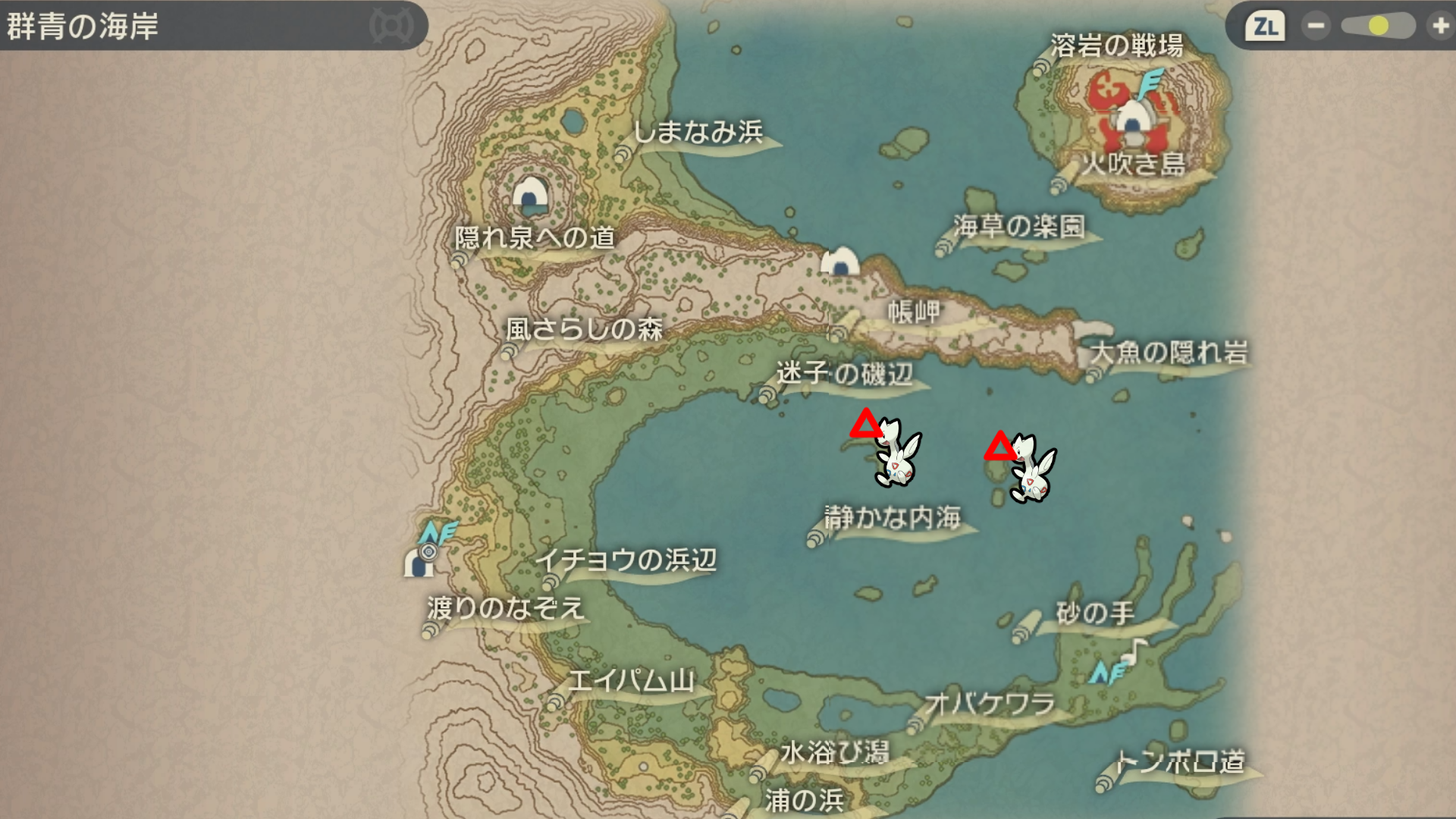 紅蓮の湿地では上空にいるところ、群青の海岸では静かなる内海の陸地に低確率で出現します。