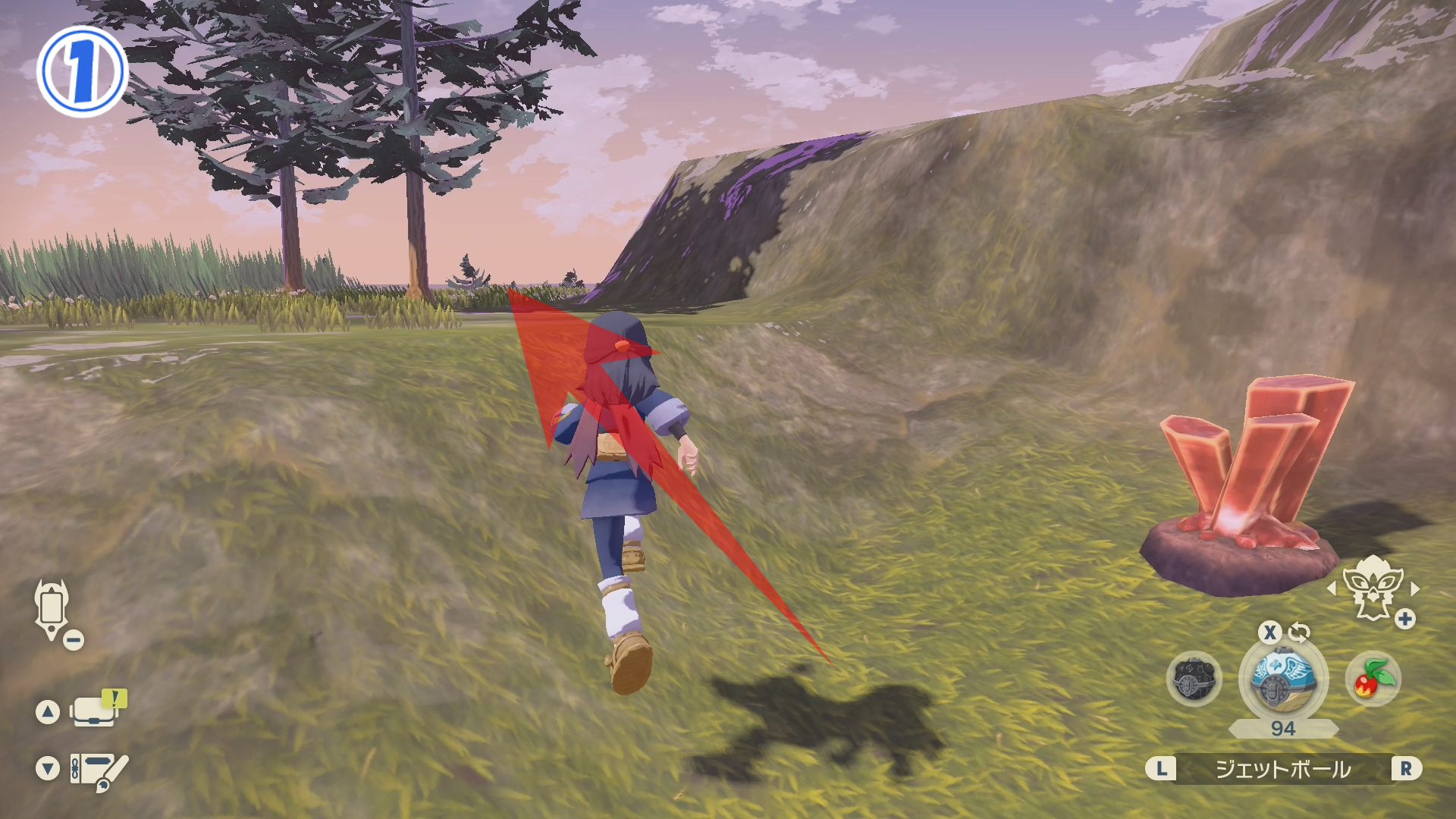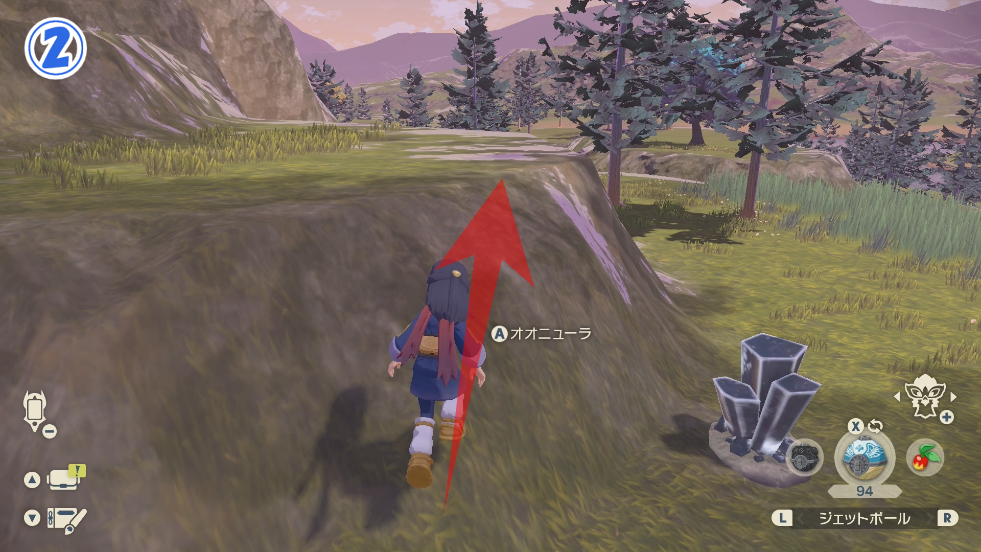 モンスターボール系を当てるには、まずは目の前の高い山の一番の盛り上がりに照準を合わせます。