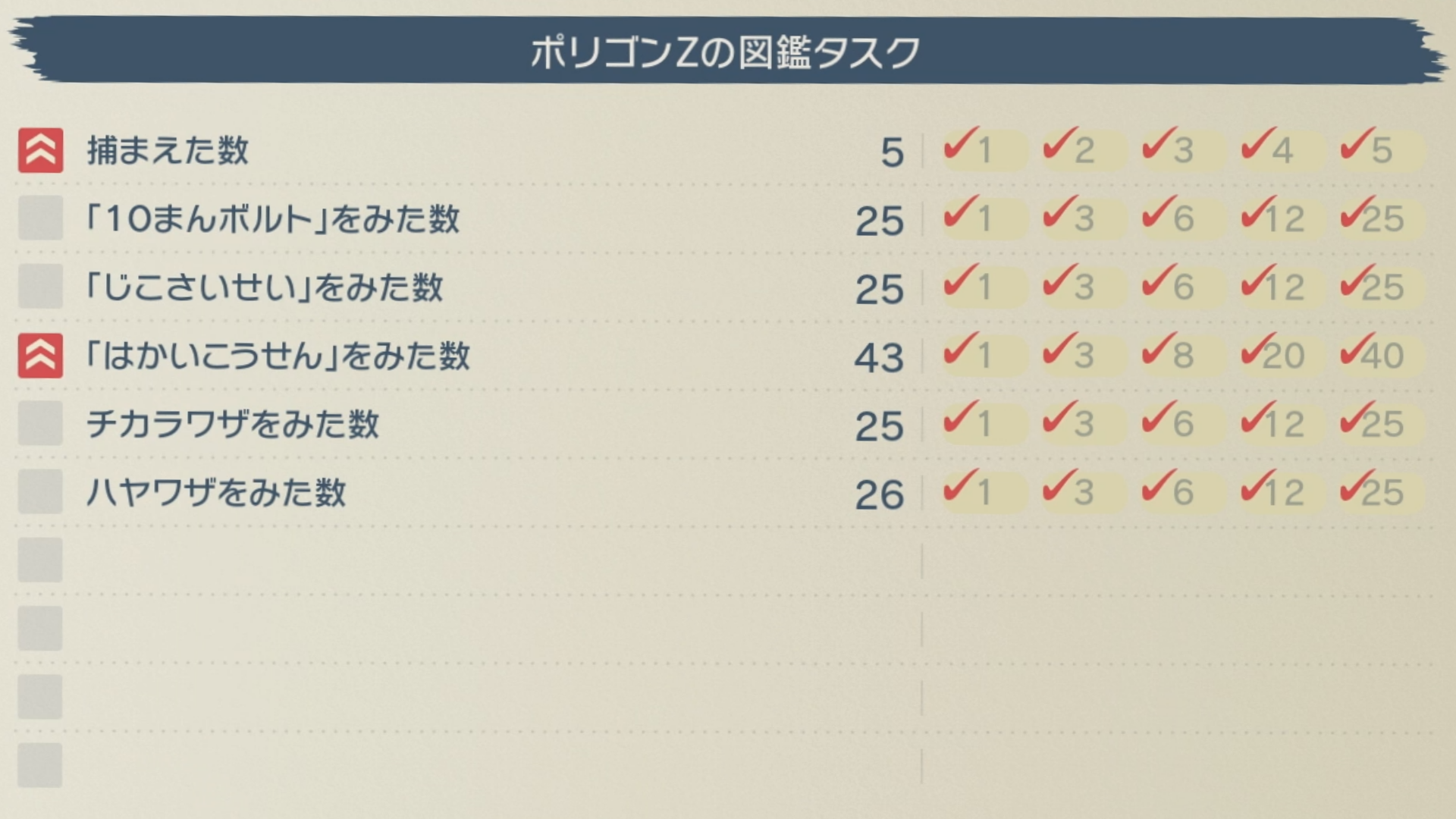 ポリゴン2の図鑑タスクをアップグレードした感じでやや手間です。ポリゴンからいっきZまで進化させた方が捕獲数稼ぎは楽かもしれません。