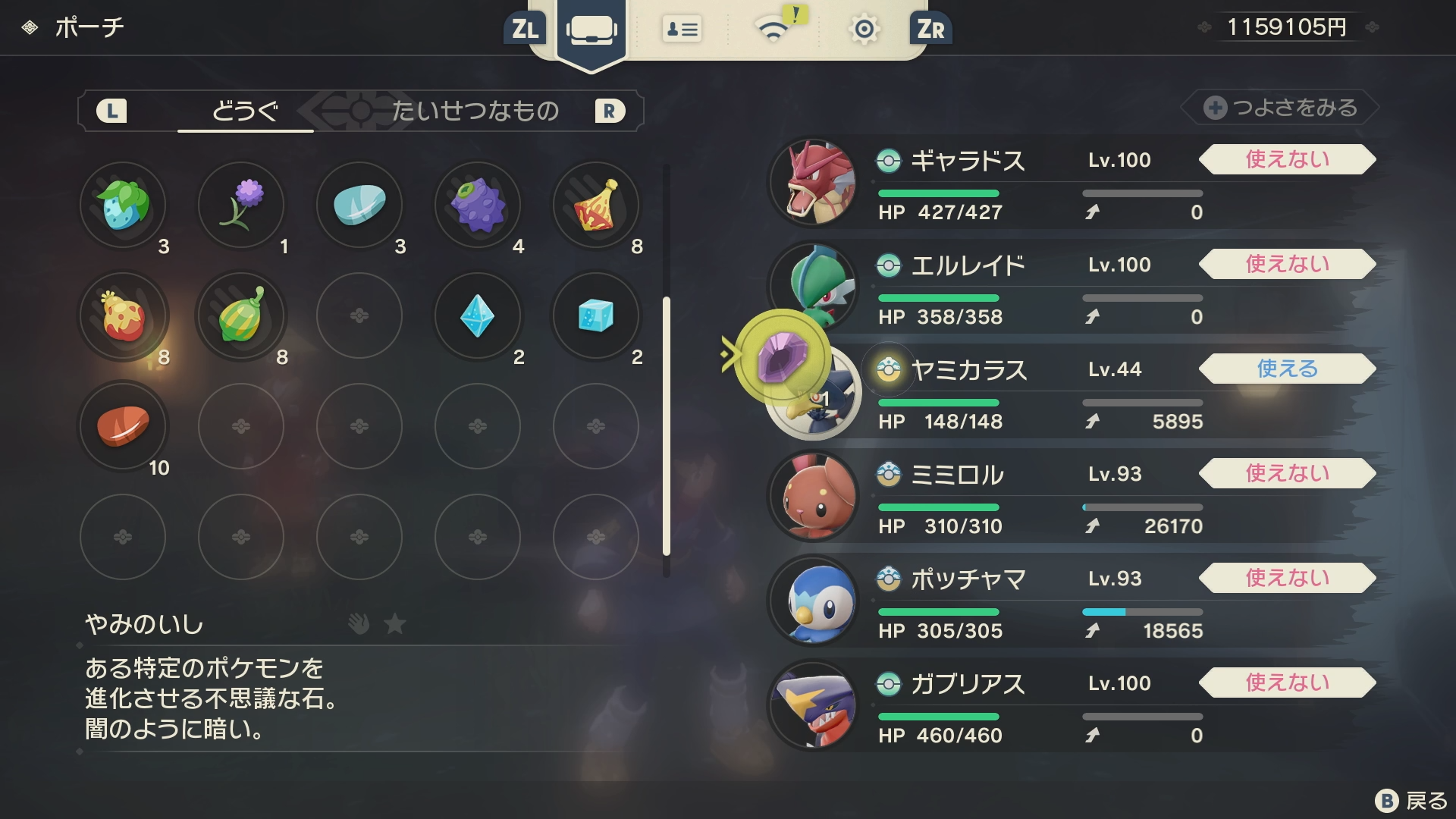 ヤミカラスからドンカラスへ進化させるには「やみのいし」を使う必要があります。