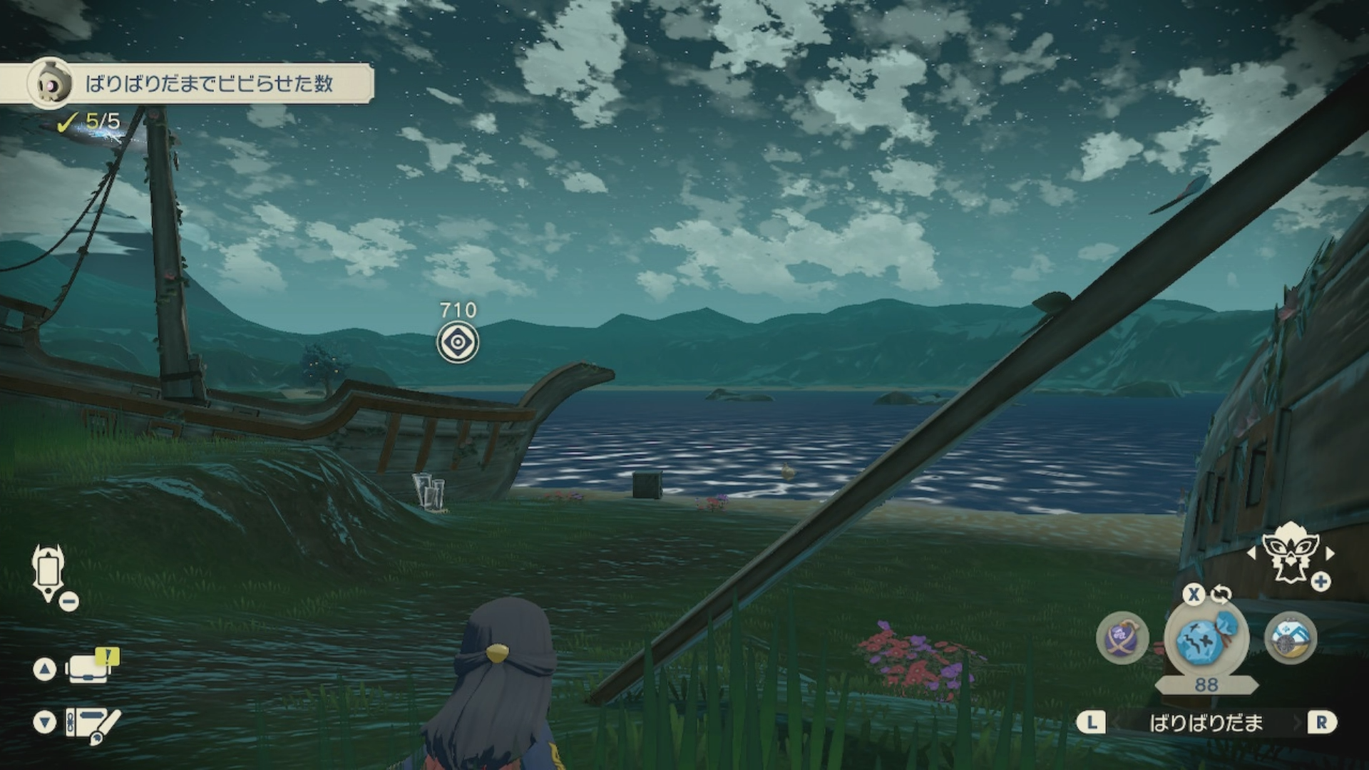 相手に気付かれていない状況で「ばりばりだま」を投げるとポケモンがビックリしてその場を離れます。通常時は集団でいるときに、その群れを散らして集団に襲われないように使用します。