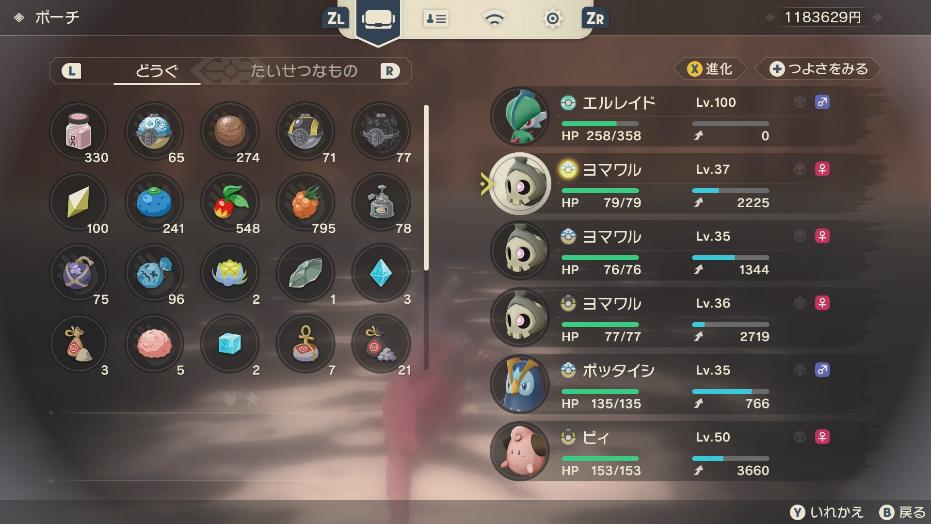 ヨマワルからサマヨールへはレベル37で進化可能状態になります。