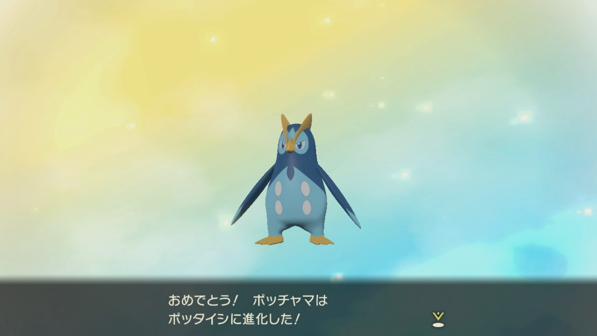 ポッタイシからエンペルトへはレベル36で進化可能状態になります。