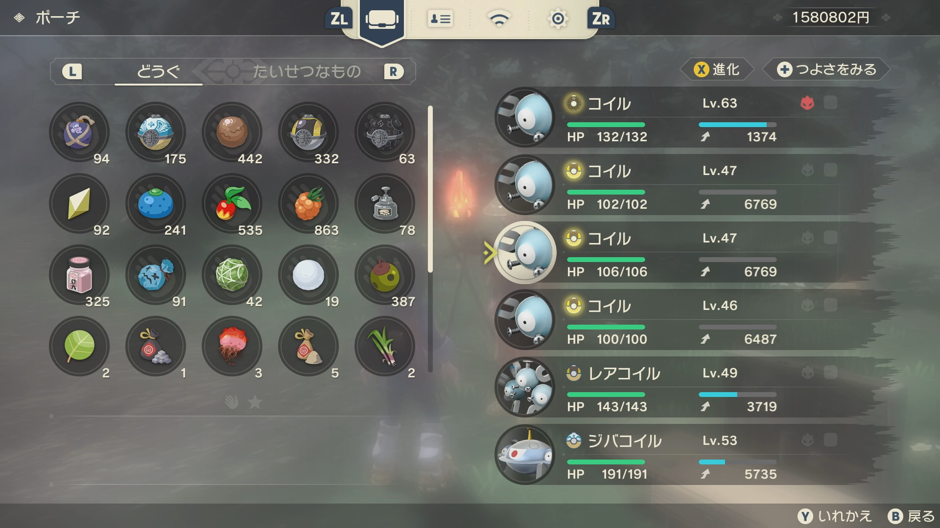 時空の歪みでは出現するポケモンのレベルが高いので、捕獲するコイル全て進化可能レベルを越えての登場です。