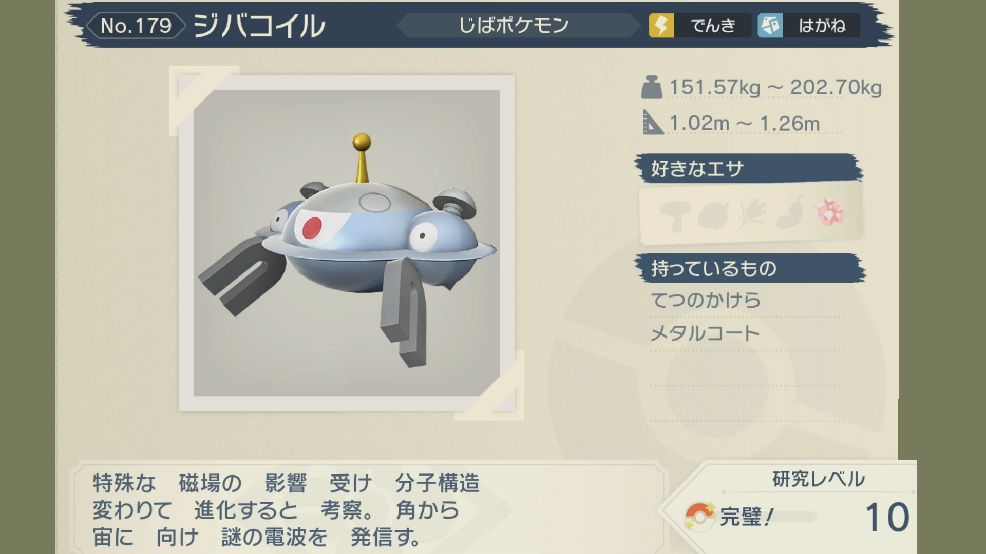 磁場が影響するポケモン。進化前は時空の歪みのみの出現ですが、天冠の山麓で3箇所漂っているのが目撃できます。