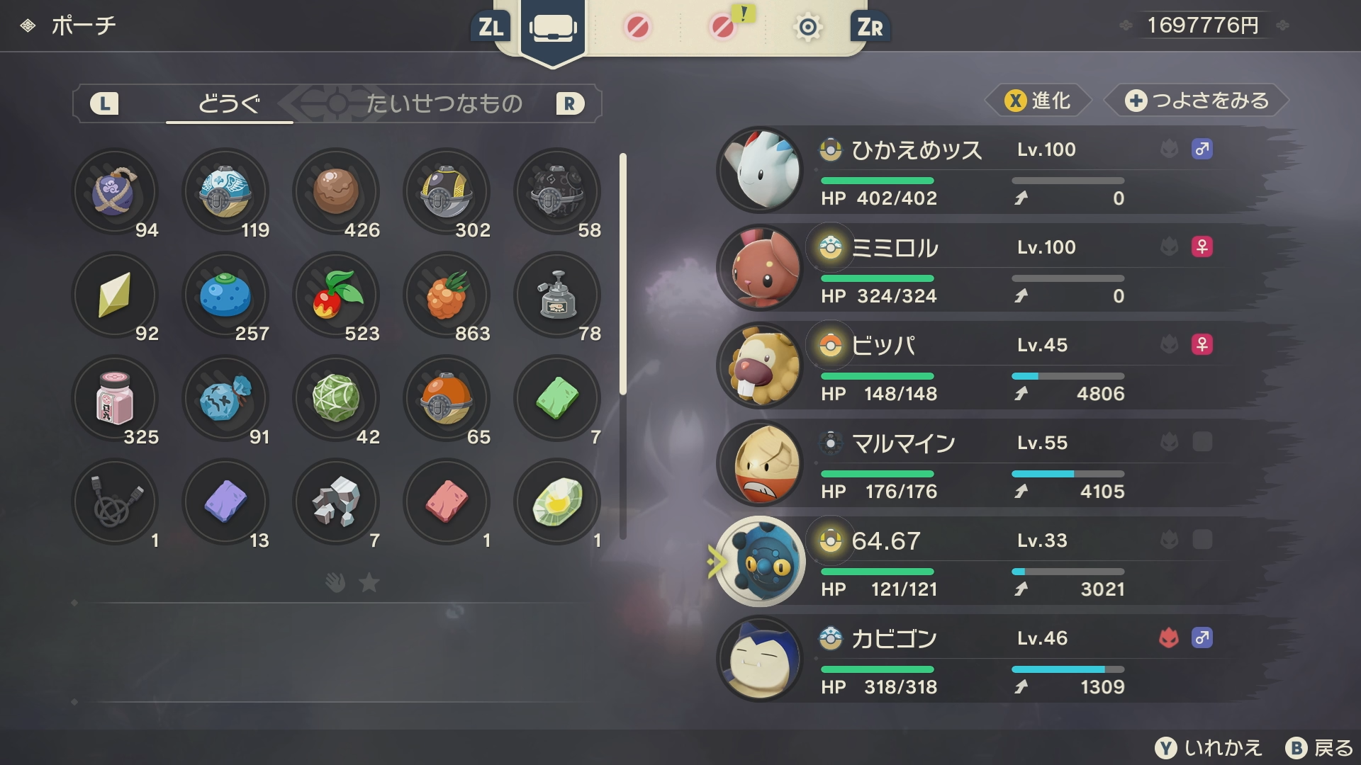 オヤブンはもちろんのこと、重さが64.75㎏以上の子は進化用に取っておきましょう。