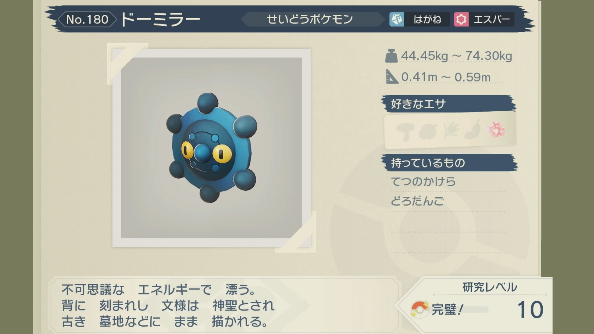 ドーミラーからドータクンへはレベル33で進化可能状態になります。