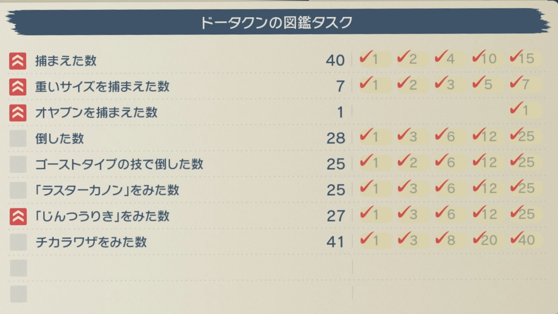 ドーミラーをレベル33以上で進化させても加算されます。“重いサイズ”、“オヤブン”タスクがあります。