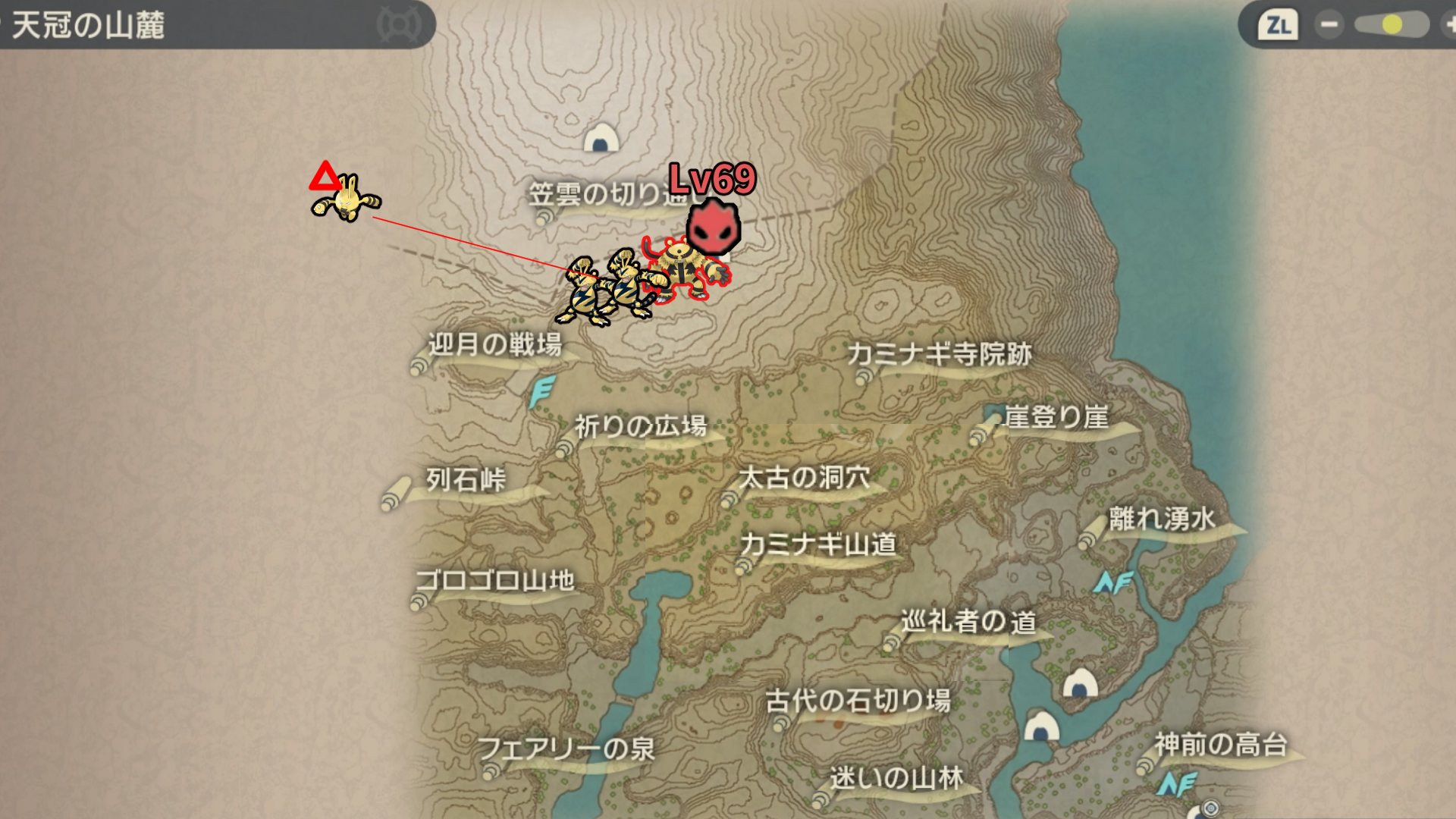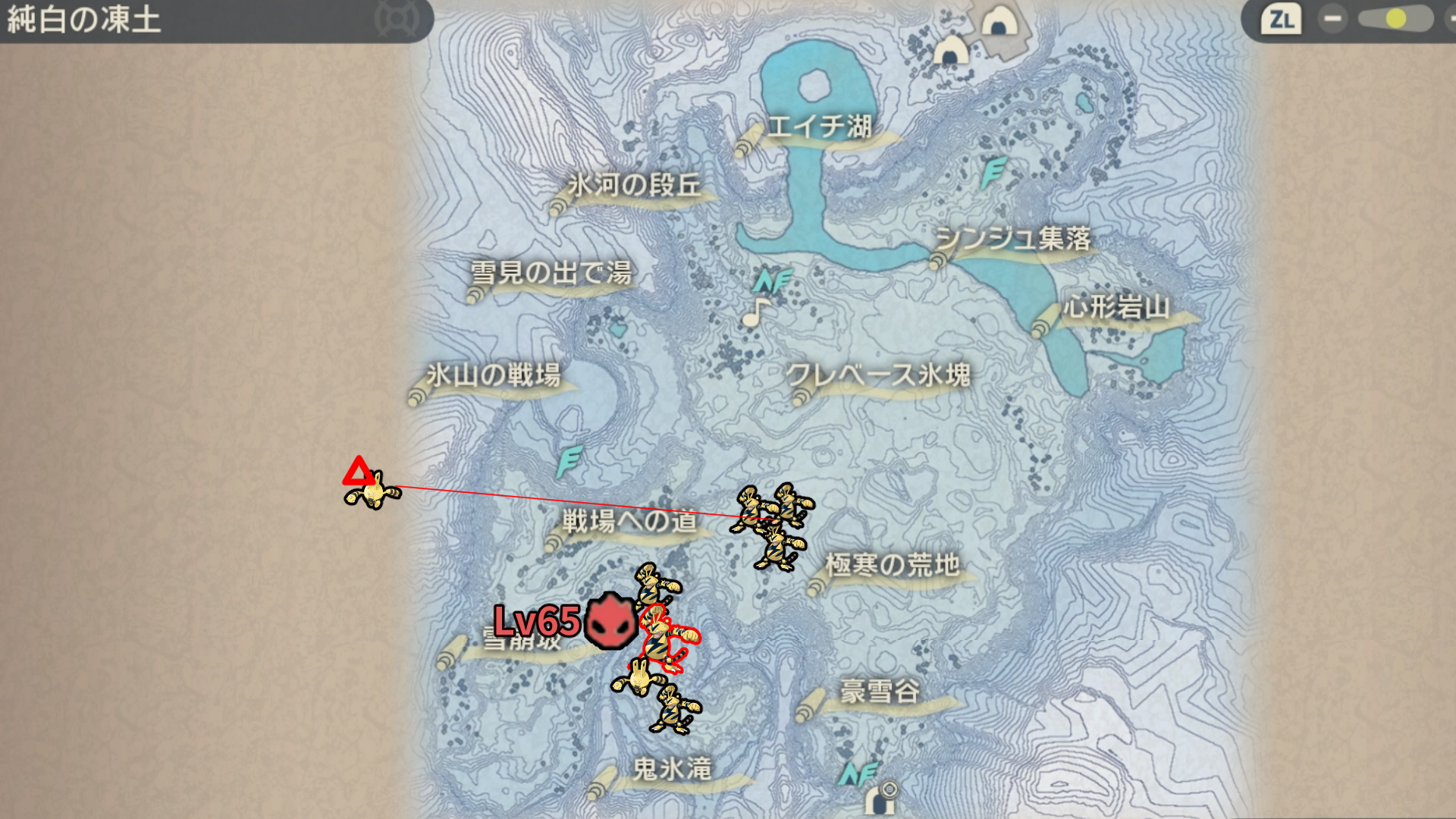 この当時はエレキッドが天冠の山麓のこの場所にしか出ないものと思って強引にエサをあげていましたが、純白の凍土でやった方が遥かにやりやすいです。