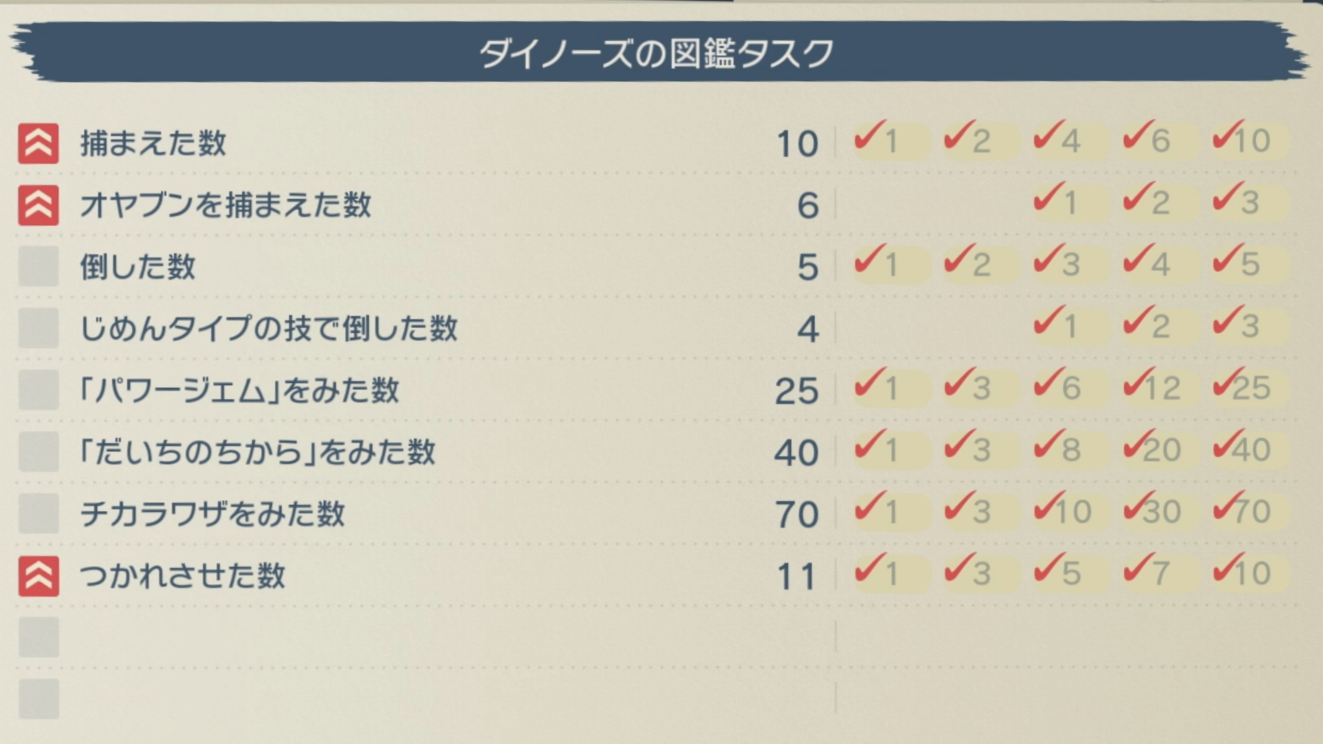 オヤブンのみの登場ですが捕獲&倒すタスクの回数がそこまで多くないので、オヤブンを3回捕まえたらあとはノズパスをどんどん進化させて捕獲数を稼ぎ、後は天冠の山麓行く度に倒していくとよいです。