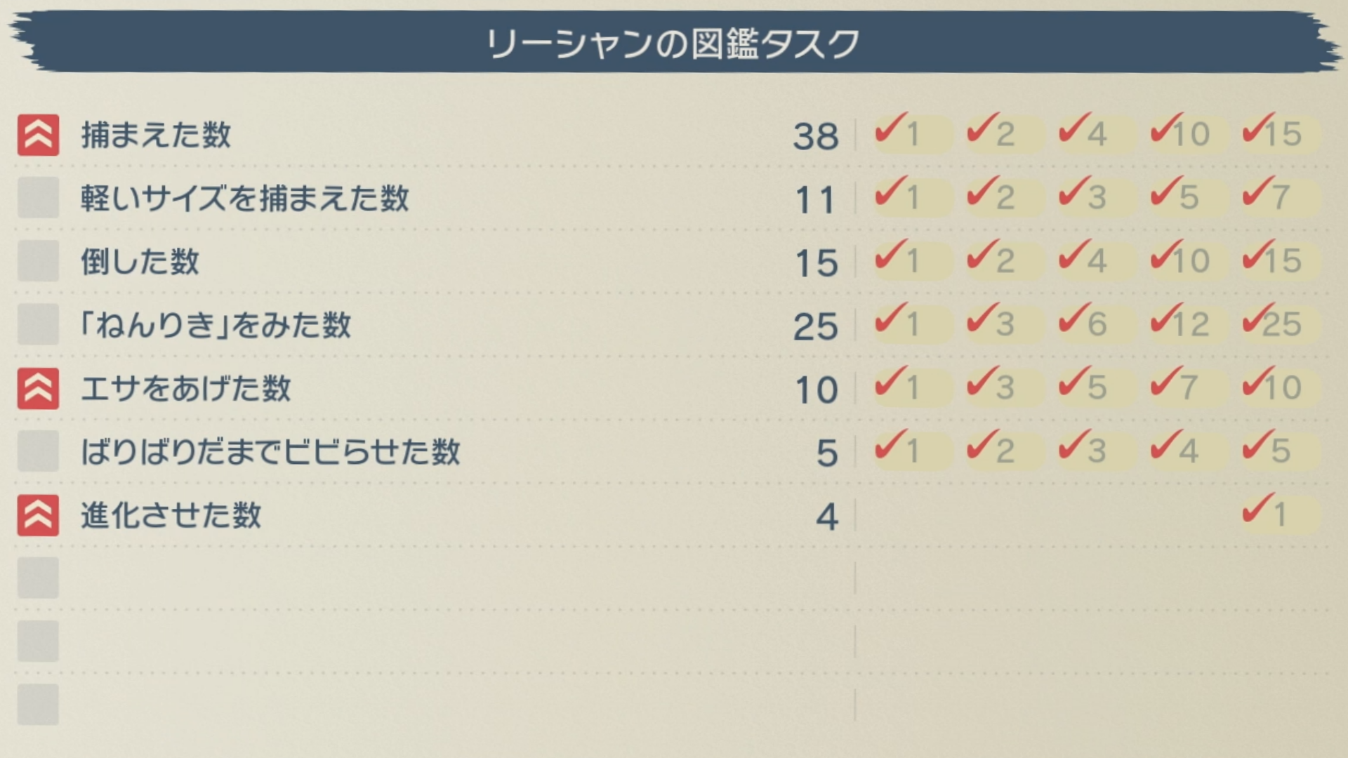 リーシャンで0.56㎏以下を進化させればチリーンでもタスクが加算されていくのですが、進化させるのが楽か、チリーンで軽いサイズを集めるのが楽か、という話になります。