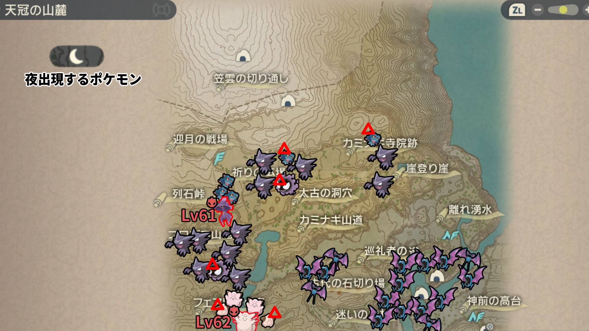 基本的にはバトルを仕掛けると警戒して逃げてしまうことが多いので、タスクにもあるエサで釣るか、背面捕獲数と違って他で稼げないので、天冠の山麓に来る度夜に会って倒していきましょう。