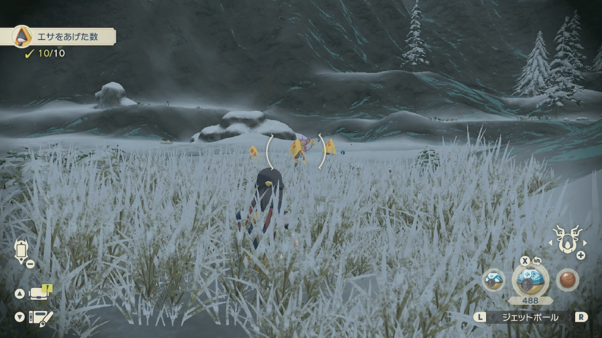 草むらが近くにないところによくいますので、遠くからフェザーボール系でぶち抜きましょう。