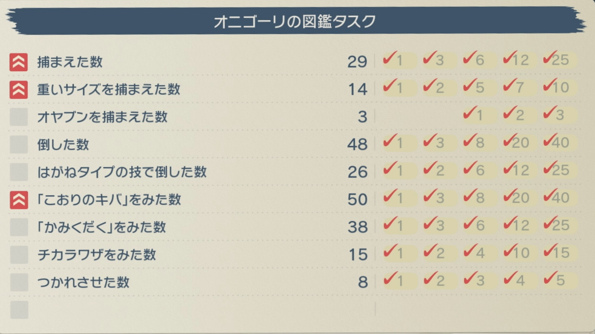 捕まえた数 1/3/6/12/25