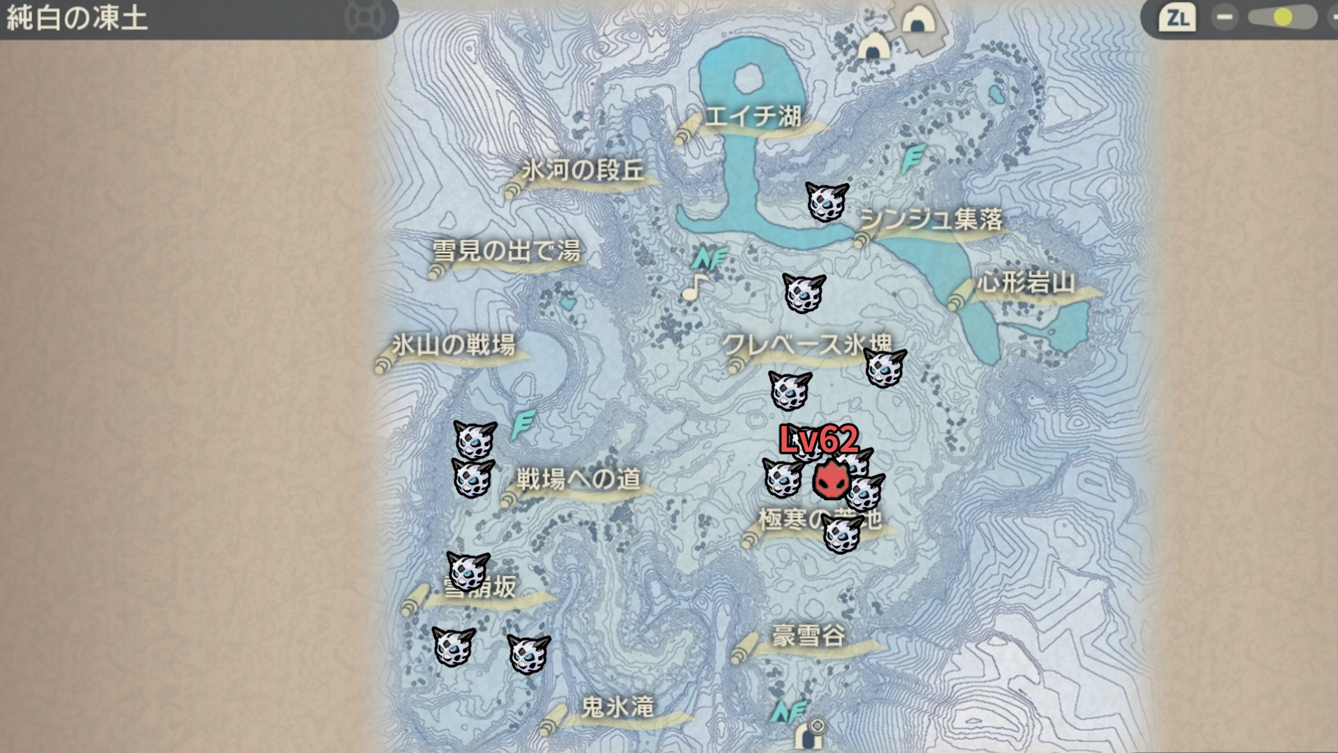 極寒の荒地にてオヤブンが確定で出現します。周りに通常個体のオニゴーリがワラワラいて直接ボールを投げづらかったりもするので、バトルに入ってしまって一度眠らせてからギガトンボールパターンの方が手っ取り早いかもしれません。