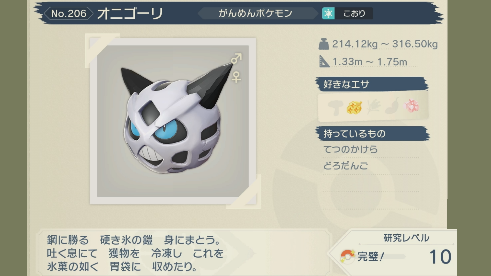 【レジェンズアルセウス】NO.206 オニゴーリの図鑑タスク!