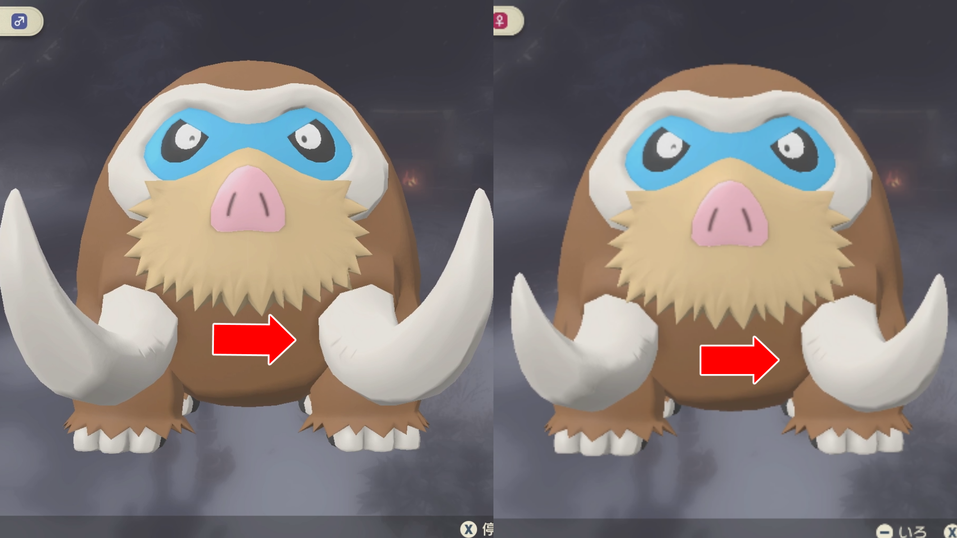 マンムーのオスメス違いも牙の長さですね。オスの方が長く、メスが短いです。
