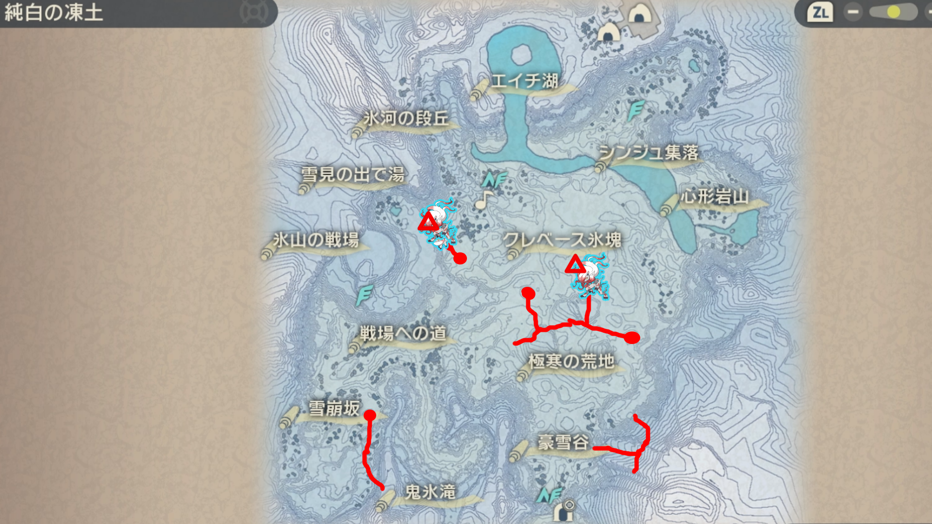 メイン任務16エイチ湖の試練終了以後に純白の凍土のゾロアの位置にたまに代わって出現するようになります。