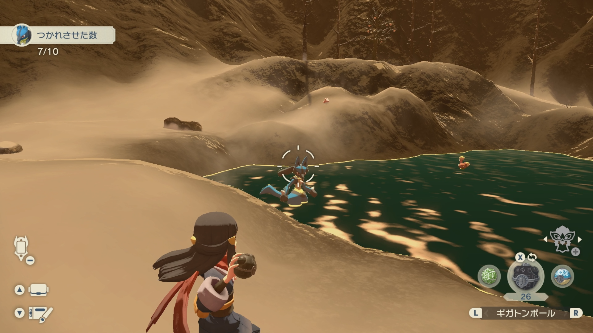 通常個体が出現するポケモンならどろだんごやねばりだまが節約できるので、通常個体を狙いたいところですが、鬼氷滝は霰が止むといなくなってしまうし、雪見の出で湯では他のポケモンもうようよいます。