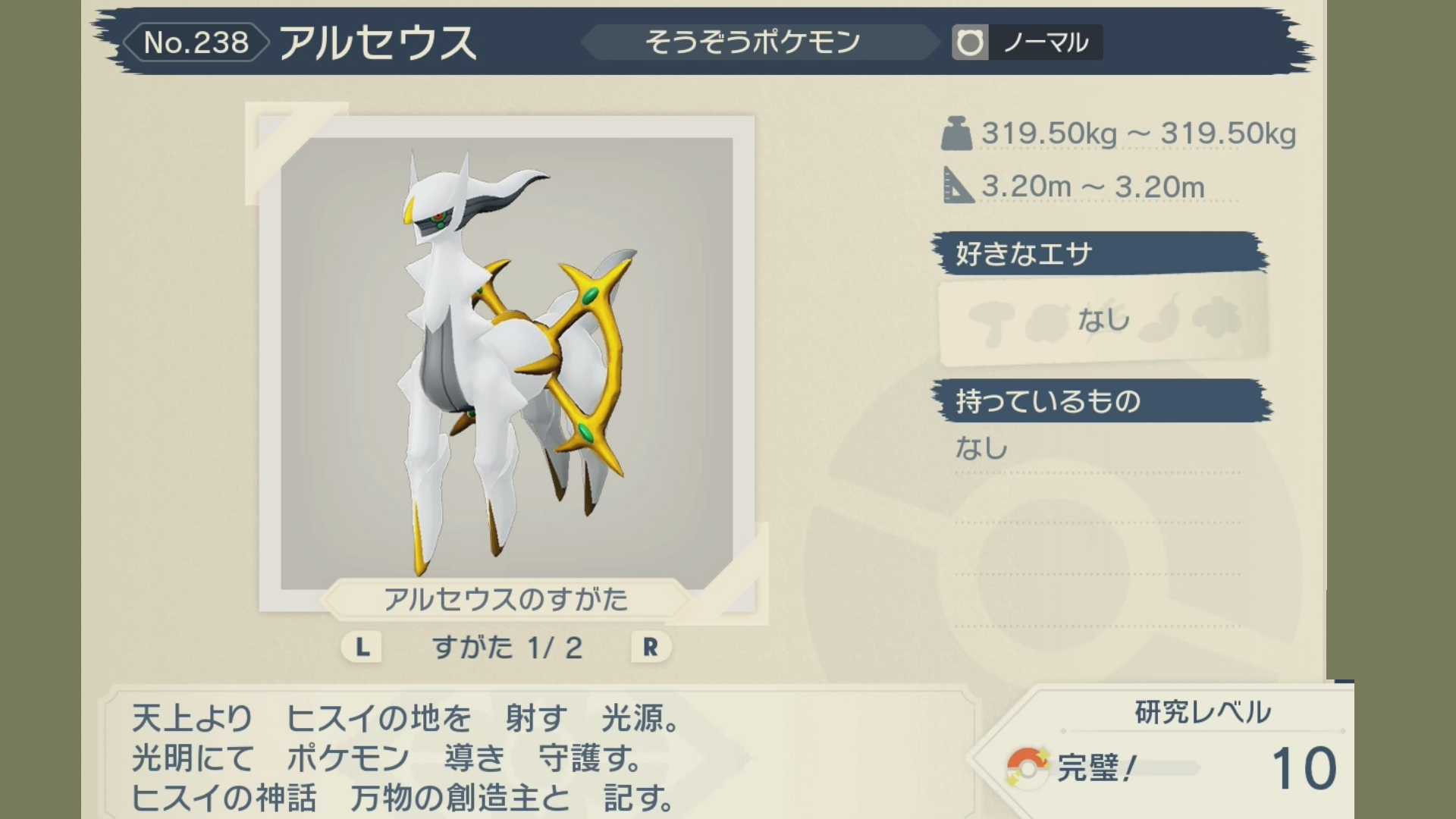 ですが、アルセウスに会えるのはゲーム冒頭であった通り全てのポケモンに会った(捕獲)後のこと。