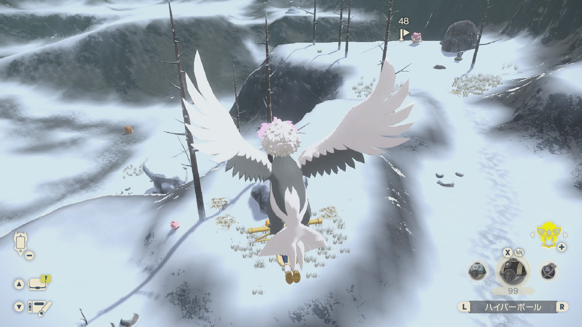 隠れる場所がないところによくいます。気づかれる前にフェザーボールを当てるか、めかくしダマで隠れて捕まえましょう。